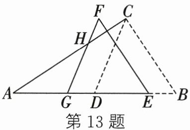 13. 如图,$\triangle ABC$中,$\angle ACB = 90^{\circ}$,$AB = 8cm$,$D是AB$的中点.现将$\triangle BCD沿BA方向平移1cm$,得到$\triangle EFG$,$FG交AC于H$,则$GH$的长等于