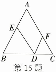 16. 如图,在等边三角形$ABC的BC边上任取一点D$,过点$D作DE// AC交AB于点E$,作$DF// AB交AC于点F$,$DE = 5cm$,$DF = 3cm$,则$\triangle ABC$的周长为______