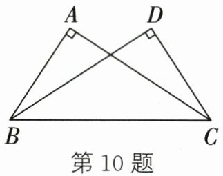 10. 如图,在$Rt\triangle ABC与Rt\triangle DCB$中,已知$\angle A = \angle D = 90^{\circ}$,请你添加一个条件(不添加字母和辅助线),使$Rt\triangle ABC\cong Rt\triangle DCB$.你添加的条件是