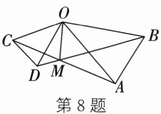 8. 如图,在$\triangle OAB和\triangle OCD$中,$OA = OB$,$OC = OD$,$OA>OC$,$\angle AOB = \angle COD = 40^{\circ}$,连接$AC$、$BD交于点M$,连接$OM$,有下列结论:① $AC = BD$;② $\angle AMB = 40^{\circ}$;③ $OM平分\angle BOC$;④ $MO平分\angle BMC$.其中正确的个数为 (
