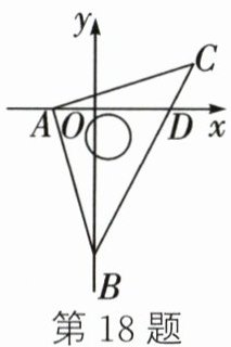 18. 如图,将一块含$45^{\circ}$角的直角三角尺放在平面直角坐标系中,顶点$A$、$B分别在x$轴、$y$轴上,斜边$BC与x轴交于点D$.已知$\angle ABC= 45^{\circ}$,点$A坐标为(-\frac{4}{3},0)$,点$B的坐标为(0,-4)$,则点$D$的坐标为______