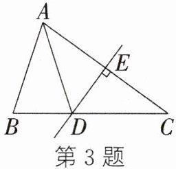 3. 如图,在△ABC中,边AC的垂直平分线交BC于点D,交AC于点E,连接AD,若AD是∠BAC的角平分线,且AB= AD,则∠B= ______°.