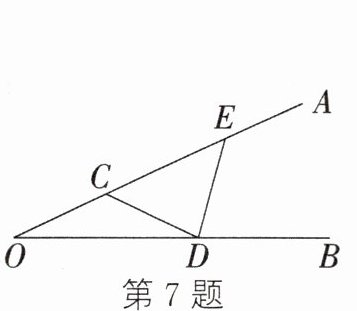 7. 如图,OC= CD= DE,若∠BDE= 75°,则∠CDE的度数是 (