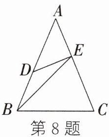 8. 如图,在△ABC中,AB= AC,点D、E分别在AB、AC边上,DB= DE= AE,BE= BC,则∠BAC的度数为 (