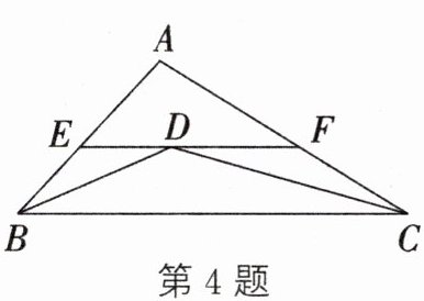 4. 如图,在$\triangle ABC$中,已知$\angle ABC和\angle ACB的平分线相交于点D$,过点$D作EF// BC交AB$、$AC于点E$、$F$,若$\triangle AEF$的周长为11,$BC= 5$,则$\triangle ABC$的周长为______