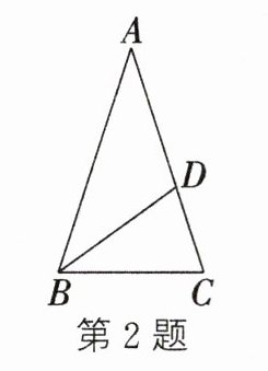 2. 如图,$\angle A= 36^{\circ}$,$\angle DBC= 36^{\circ}$,$\angle C= 72^{\circ}$,则图中等腰三角形有(