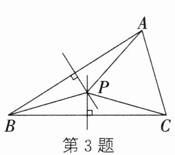 3. 如图,在$\triangle ABC$中,已知边$AB的垂直平分线与边BC的垂直平分线交于点P$,连接$PA$、$PB$、$PC$,则图中有