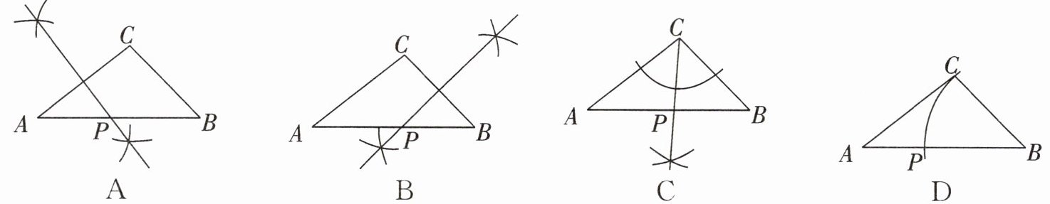 3. 在$△ABC$中,$∠ACB$为钝角,用无刻度的直尺和圆规在边 AB 上确定一点 P,使$∠BPC= 2∠A$,下列作法正确的是 (