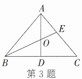 3. 如图,在$\triangle ABC$中,$AB= AC$,$∠BAC= 80^{\circ}$,$AD$是中线,$BE$是角平分线,$AD与BE交于点O$,则$∠AOB$的度数为(