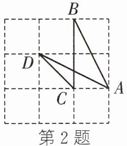 2. (2024·苏州模拟)如图所示,点$A$、$B$、$C$、$D$均在正方形网格格点上,则$∠B+∠D$的值为(