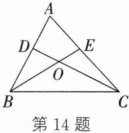 14. 如图,在△ABC中,BE是角平分线,点D在边AB上(不与点A、B重合),CD与BE交于点O.
