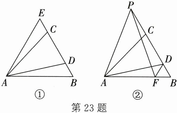 (2) 如图②,在$AB上取一点F$,使$DF = DB$,$P为BC$延长线上的一点,连接$PA$、$PF$,若$PA = PF$,猜想$PC与BD$的数量关系并证明.