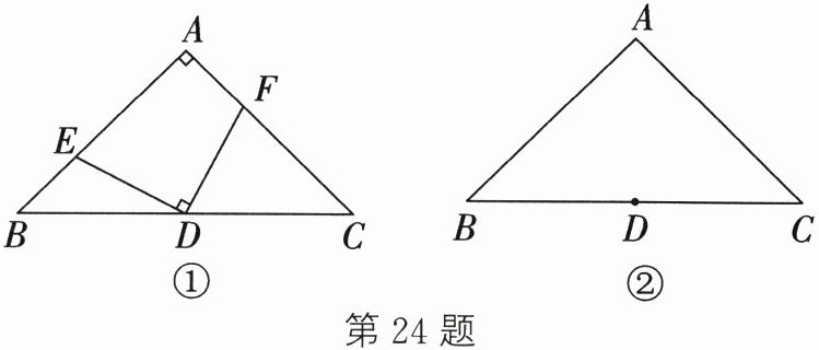 24. 在$\triangle ABC$中,$\angle A = 90^{\circ}$,$AB = AC$,点$D为BC$的中点.