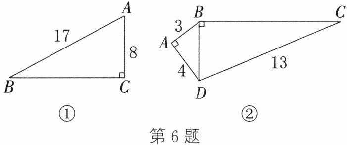 (2)在Rt△ABD中,由勾股定理可得AD²+AB²=BD²,BD=5.在Rt△BDC中,由勾股定理可得BD²+BC²=CD²,BC=12.