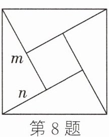 8. (2024·南通)“赵爽弦图”巧妙利用面积关系证明了勾股定理.如图所示的“赵爽弦图”是由四个全等直角三角形和中间的小正方形拼成的一个大正方形.设直角三角形的两条直角边长分别为$m$,$n(m > n)$.若小正方形面积为5,$(m + n)^{2}= 21$,则大正方形面积为(