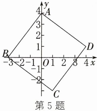5. 正方形ABCD在平面直角坐标系中的位置如图所示,已知点A的坐标为$(0,4)$,点B的坐标为$(-3,0)$,则点C的坐标是______