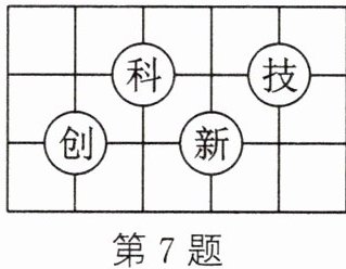 7. (2024·贵州)为培养青少年的科学态度和科学思维,某校创建了“科技创新”社团.小红将“科”“技”“创”“新”写在如图所示的方格纸中,若建立平面直角坐标系,使“创”“新”的坐标分别为$(-2,0)$,$(0,0)$,则“技”所在的象限为 (