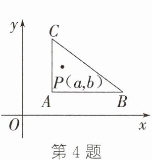 4. 如图,$△ABC$在平面直角坐标系中,$AB// x$轴,$AC// y$轴,且$AB= 4,AC= 3.P(a,b)为△ABC$内一点,将$△ABC$平移,当平移后得到的$△A_{1}B_{1}C_{1}$的一顶点落在原点上时,点P的对应点$P_{1}的坐标为(a-6,b-4)$,则点A的坐标为
