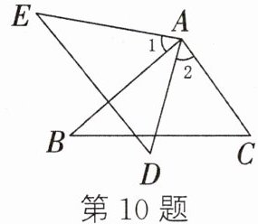 10. 如图,AC= AD,∠1= ∠2,要使△ADE≌△ACB,则需再添加一个条件是______