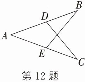 ∵ AD = AE , BD = CE , ∴ AB = AC 。在 △ACD 和 △ABE 中, { AC = AB, ∠A = ∠A, AD = AE. ∴ △ACD ≌ △ABE ( SAS ) 。 ∴ ∠B = ∠C
