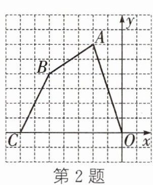 2. 如图是一块不规则的四边形地皮$ABCO$,各顶点坐标分别为$A(-2,6)$,$B(-5,4)$,$C(-7,0)$,$O(0,0)$(图上一个单位长度表示$10\mathrm{m}$),则这块地皮的面积是 (