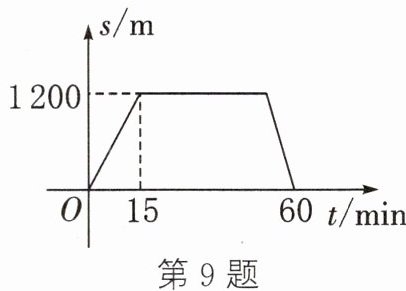9. 周日,小明从家步行到图书馆查阅资料,查完资料后,小明立刻按原路回家.已知回家时的速度是去时速度的1.5倍,在整个过程中,小明离家的距离s(m)与他所用的时间t(min)之间的关系如图所示,则小明在图书馆查阅资料的时间为