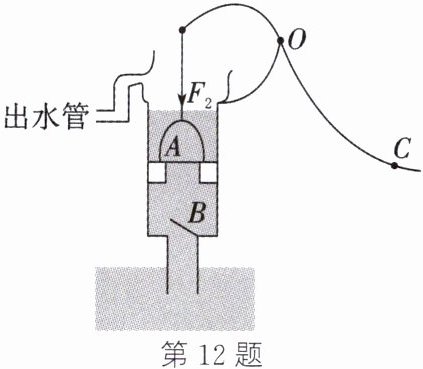 12. (2023·眉山)学校组织学生参加劳动实践活动,在基地发现了一台活塞式抽水机,在杠杆上的$C$处用力便可取水。请在图中画出: