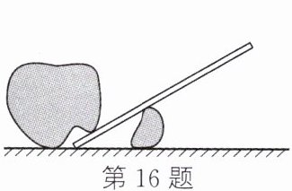 16. 用一根钢棒撬动地面上的一块大石头,如图所示,请你在图中作出最省力时的动力$F并标出相应支点O$的位置。