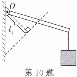 10. 如图所示,$O$为支点,$l_{1}为动力F_{1}$的力臂,请作出此杠杆的动力$F_{1}和阻力F_{2}$的示意图。