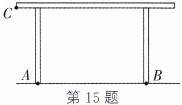 15. 如图所示,在$C点用力把桌腿A$抬离地面时,桌腿$B$始终没有移动,请在$C点画出最小作用力F及其力臂l$的示意图。