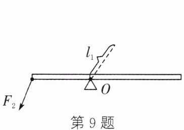 9. 如图所示,一轻质杠杆在力$F_{1}$、$F_{2}$的作用下处于静止状态。$l_{1}是力F_{1}$的力臂,请在图中画出$F_{2}的力臂l_{2}和力F_{1}$的示意图。