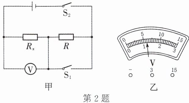 (2) 将实验器材按照电路图连接好电路,先闭合______,电压表的示数如图乙所示,为______$V$,再闭合______,电压表的示数为$2.8V$。