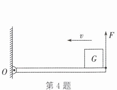 4. 如图所示,有一质量不计的长木板,左端可绕$O$点转动,在它的右端放一重为$G$的物块,并用一竖直向上的力$F$拉着木板。现使物块向左缓慢移动,木板始终在水平位置保持静止。则在此过程中,拉力$F$ ()