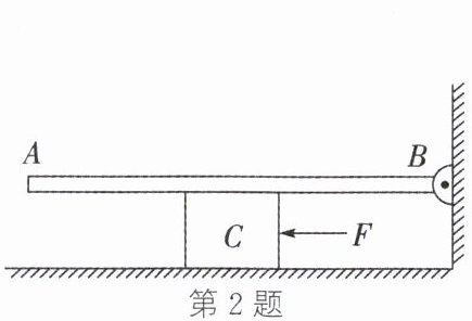 2. 一均匀木板$AB$,$B$端固定在墙壁的转轴上,木板可在竖直面内转动,木板下垫有长方体木块$C$,恰好使木板水平放置,如图所示,现有水平力$F由B端向A端缓慢匀速推动木块C$,在推动过程中,推力$F$将 ()