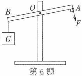 6. 用如图所示的杠杆提升重物,设作用在$A端的力F$始终与杠杆垂直,那么,在将重物提升到最高处的过程中,力$F$的大小将 ()