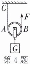 4. 如图所示,动滑轮是变形杠杆,其支点是______点,如果物体G重为100N,动滑轮重为20N,绳子重、摩擦不计,那么物体G匀速上升时,拉力F= ______N。如果绳子的自由端移动的距离是4m,那么物体上升的高度是______m。
