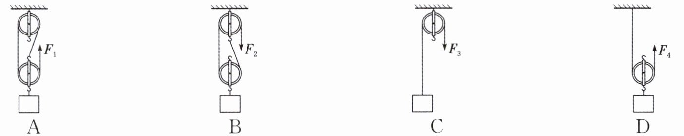 2. 分别使用下列四种装置匀速提升同一重物,不计滑轮重、绳重和摩擦,最省力的是 ()