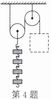 4. 有若干个质量相等的钩码,如图所示,若要使滑轮组处于静止状态,则图中虚线框内悬挂钩码的个数是(不计摩擦、滑轮和绳的重力) ()