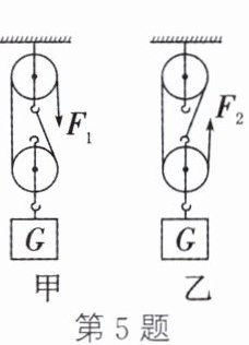 5. 如图所示,甲、乙都是由一个定滑轮和一个动滑轮组成的滑轮组,但是它们有不同点。