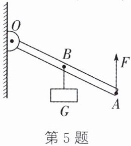 5. 如图所示,物体重为150N,挂在杠杆OA的中点B,人用100N的拉力竖直向上将物体提高0.5m,手移动的距离为1m。在此过程中,下列说法不正确的是()