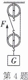 4. (2024·南通海门期末)如图所示的滑轮组下挂一重为45N的物体,现用20N的拉力F在4s内将物体匀速提升2m。求: