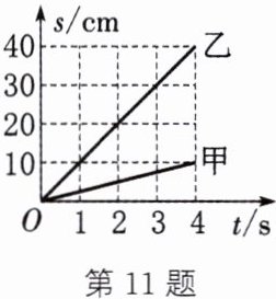 11. 小明用滑轮组提升物体,物体竖直移动的距离随时间变化的关系如图中图线甲所示,绳子自由端竖直移动的距离随时间变化的关系如图中图线乙所示。已知物体的质量为90kg,绳子自由端的拉力F为260N,g取10N/kg。不计绳重和摩擦,在0~4s的过程中,则: