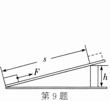 9. 如图所示,固定的斜面长$s= 2m$,高$h= 0.5m$,沿斜面向上用50N的拉力在4s内把一个重60N的物体从斜面底端匀速拉到顶端,这一过程中 ()