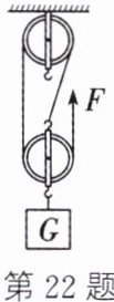 22. (2024·无锡期中)如图所示,某工人利用滑轮组在200s内将2700N的重物匀速提升了10m,此过程中绳端的拉力F为1000N,不计钢丝绳的重力和摩擦。