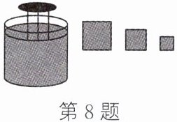 8. (教材P33材料改编)小明同学将如图所示的木块、三脚小桌分别当作“重锤”和“桩”,做打桩模拟实验。