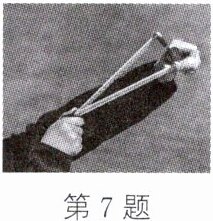 7. 如图所示为小军玩弹弓的情景。在一定范围内,橡皮筋被拉得越长,同样的“子弹”射得越远,橡皮筋对“子弹”做的功越______,橡皮筋具有的弹性势能越______,说明橡皮筋的弹性势能与______有关。
