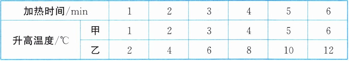 | 升高温度/℃ | 甲 | 1 | 2 | 3 | 4 | 5 | 6 |