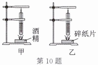10. 小明学习燃料的热值之后,自己设计一个实验来探究酒精和碎纸片的热值大小,实验装置如图所示。
