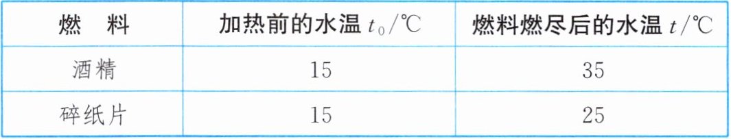 根据表中数据可以判断:酒精的热值$q_{酒精}$____(大于/小于)碎纸片的热值$q_{纸片}$。