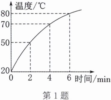 1. 某物理兴趣小组的同学,用煤炉给水加热,同时他们绘制了如图所示的加热过程中水的温度随时间变化的图线,在6min内完全燃烧了0.2kg的煤,水的比热容为$4.2×10^3J/(kg·℃),$煤的热值约为$3×10^7J/kg。$